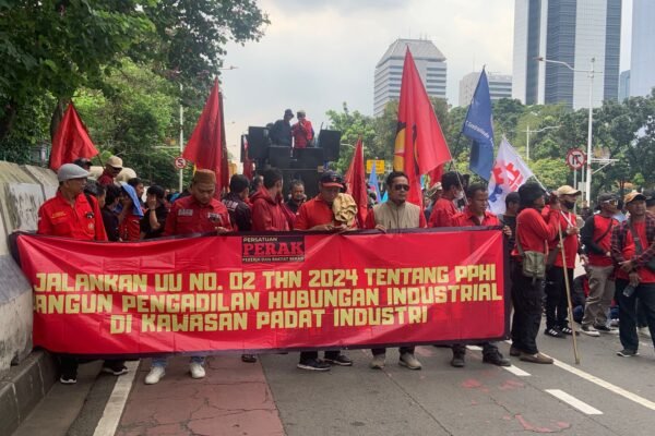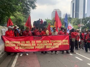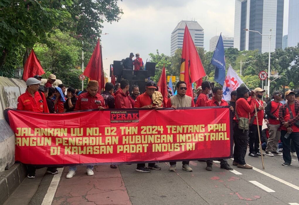 Jakarta, Rabu (15/4/2026) — Ratusan buruh yang tergabung dalam Aliansi Persatuan Pekerja dan Rakyat (PERAK) Bekasi menggelar aksi unjuk rasa di kawasan Istana Negara dan Sekretariat Negara, tepatnya di sekitar IRTI Monas. Massa mulai berdatangan sejak pukul 10.00 WIB dengan membawa tuntutan utama pembentukan Pengadilan Hubungan Industrial (PHI) di Kabupaten Bekasi. Aksi ini merupakan bagian…